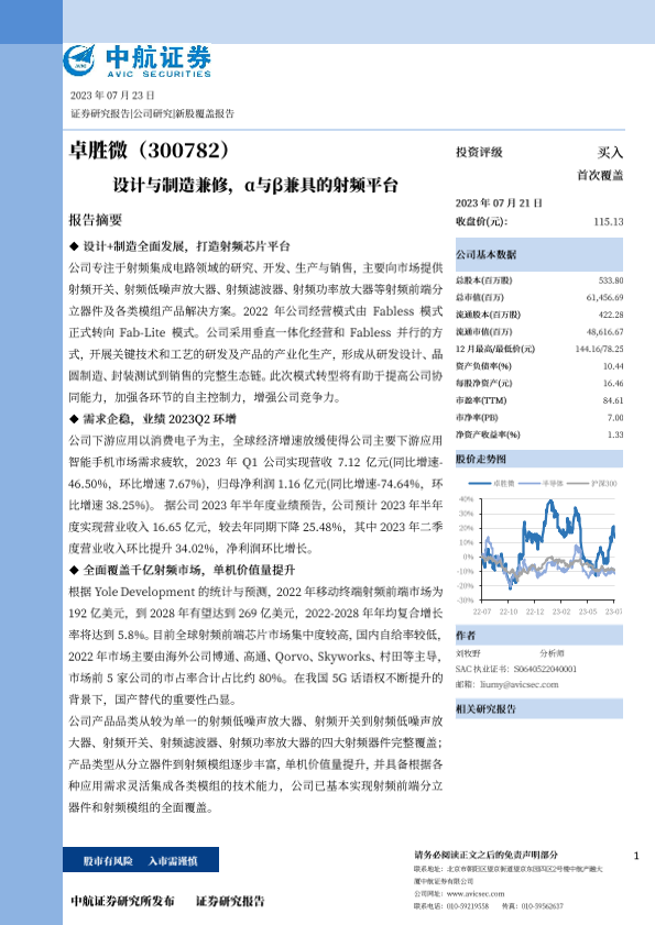 【中航证券】【20230721】卓胜微(300782)设计与制造兼修,α与β兼具的射频平台-25页