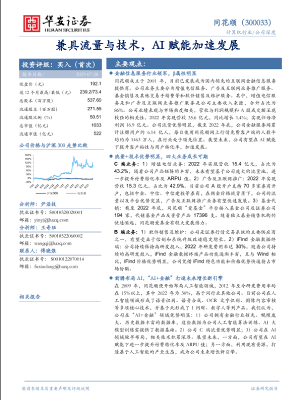 【华安证券】【20230728】同花顺(300033)兼具流量与技术,AI赋能加速发展-38页