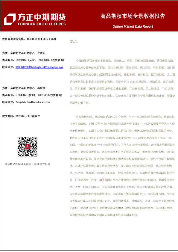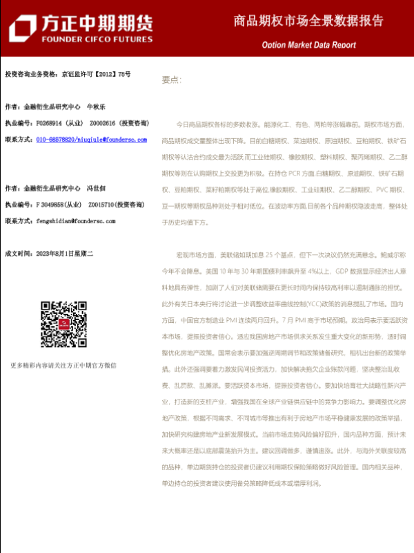 【方正中期期货】【20230801】商品期权市场全景数据报告-101页
