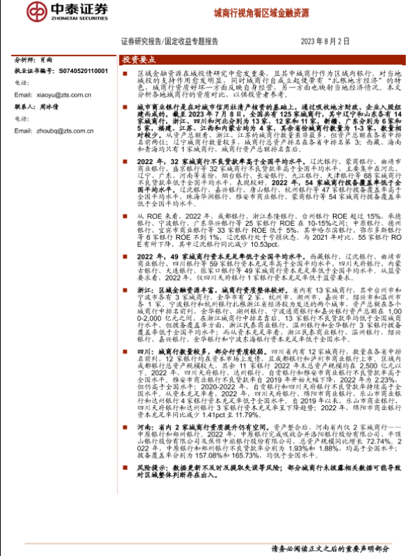 【中泰证券】【20230802】固定收益专题报告:城商行视角看区域金融资源-22页