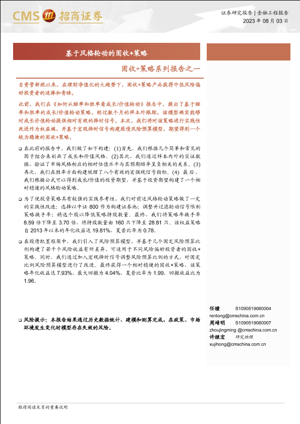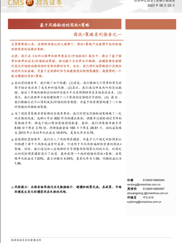 【海通证券】【20230803】固收+策略系列报告之一:基于风格轮动的固收+策略-18页