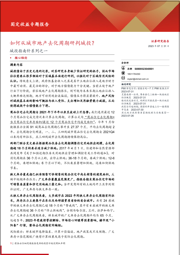 【西部证券】【20230731】城投指南针系列之一:如何从城市地产去化周期研判城投?-22页