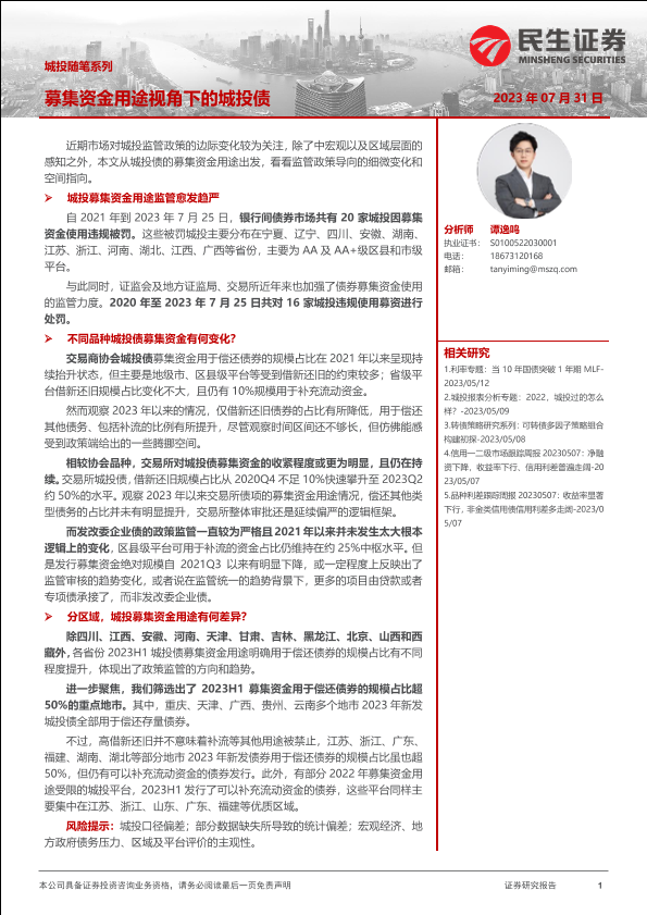 【民生证券】【20230731】城投随笔系列:募集资金用途视角下的城投债-21页