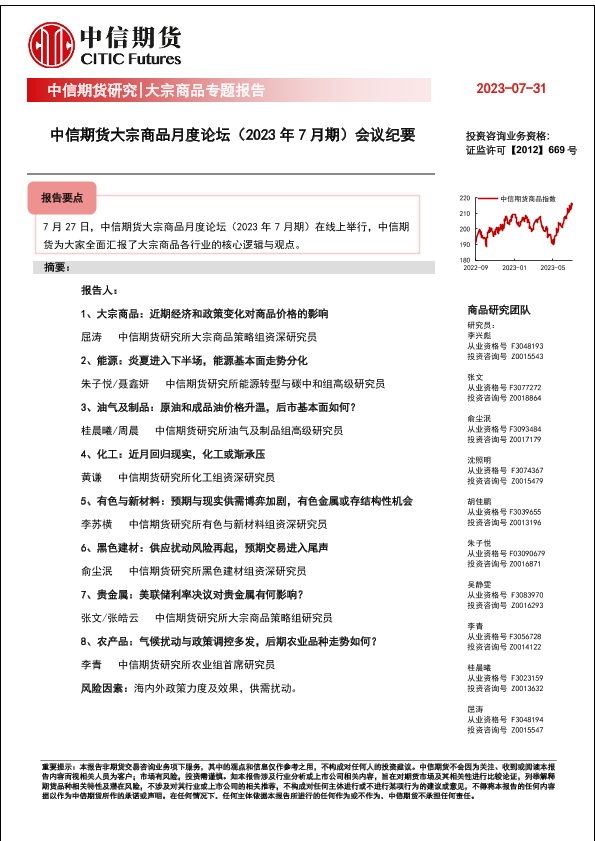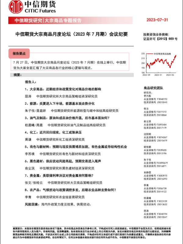 【中信期货】【20230731】大宗商品月度论坛(2023年7月期)会议纪要-23页