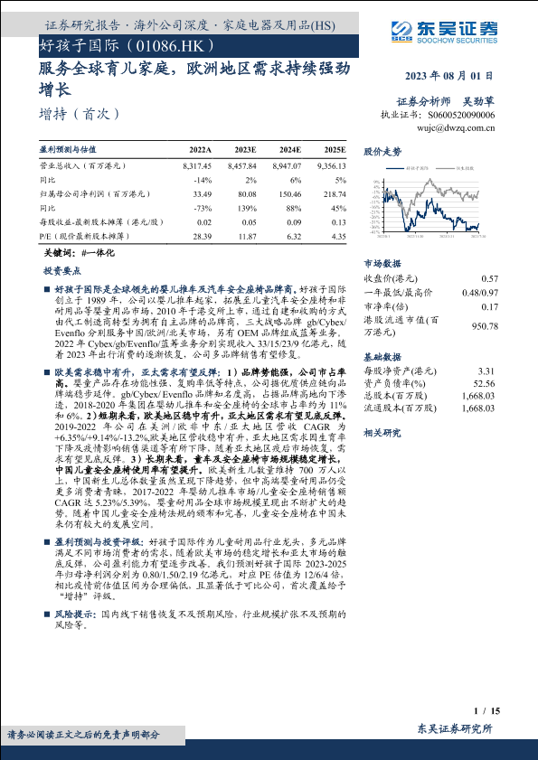 【东吴证券】【20230801】好孩子国际01086.HK服务全球育儿家庭,欧洲地区需求持续强劲增长-15页