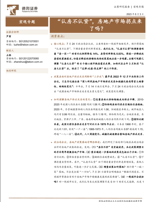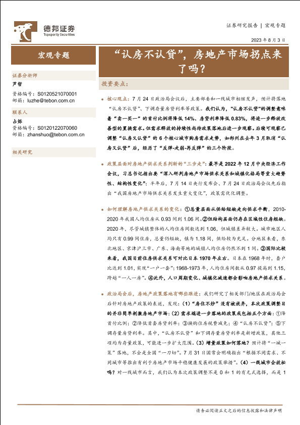 【德邦证券】【20230803】宏观专题:“认房不认贷”,房地产市场拐点来了吗?-15页