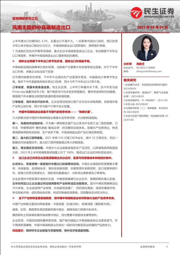 【民生证券】【20230804】宏观调研系列之五:风雨无阻的中高端制造出口-17页