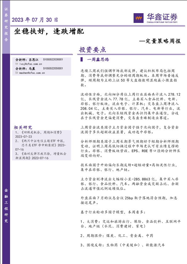 【华鑫证券】【20230730】定量策略周报:坐稳扶好,逢跌增配-21页