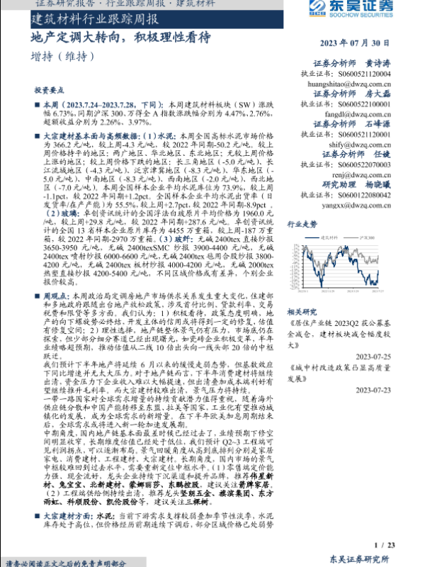【东吴证券】【20230730】建筑材料行业跟踪周报:地产定调大转向,积极理性看待-23页