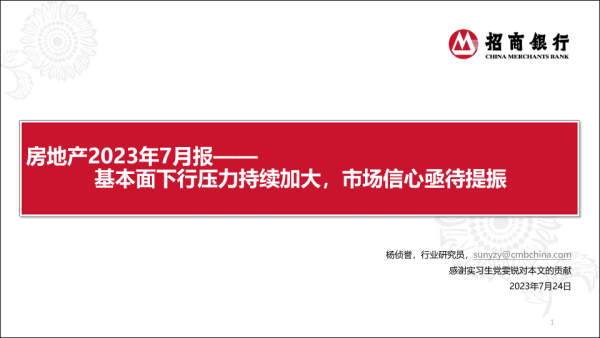 【招商银行】【20230724】房地产行业2023年7月报:基本面下行压力持续加大,市场信心亟待提振-23页