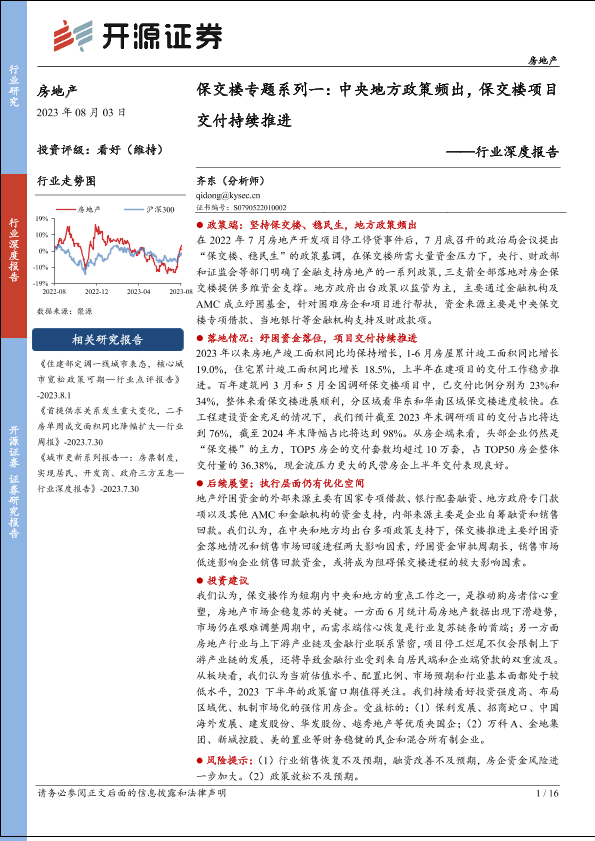 【开源证券】【20230803】房地产行业深度报告:保交楼专题系列一:中央地方政策频出,保交楼项目交付持续推进-16页