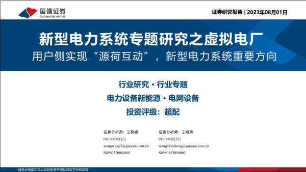 【国信证券】【20230801】新型电力系统专题研究之虚拟电厂:用户侧实现“源荷互动”,新型电力系统重要方向-37页