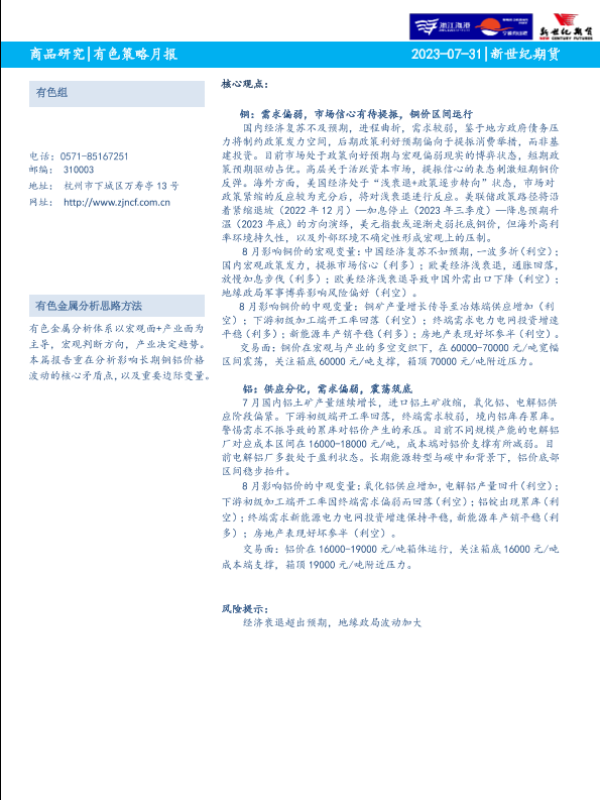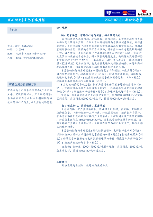 【新世纪期货】【20230731】有色策略月报-20230731-20页