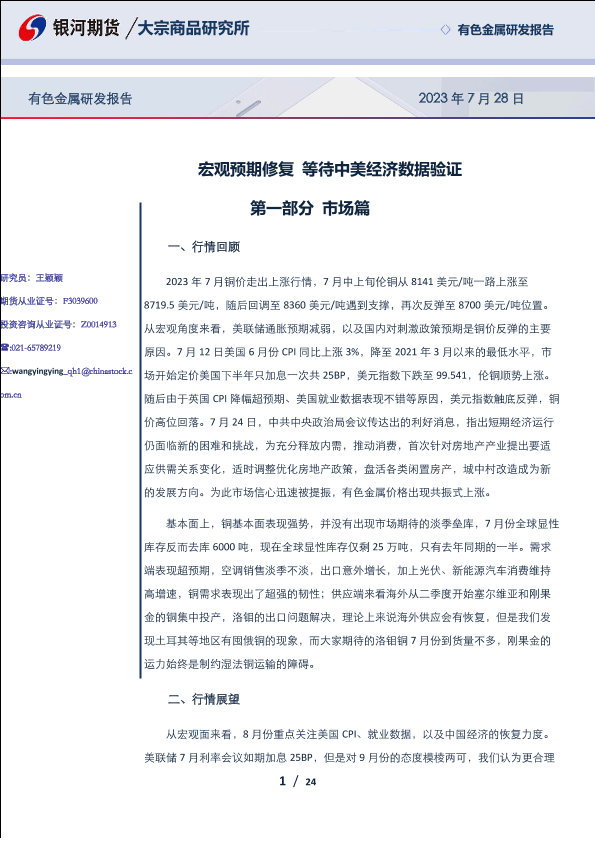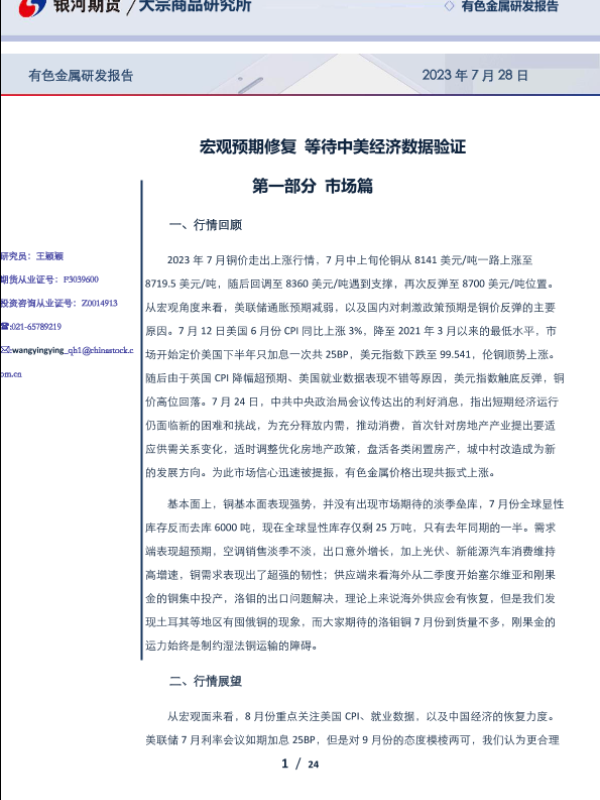 【银河期货】【20230728】有色金属研发报告:宏观预期修复,等待中美经济数据验证-24页