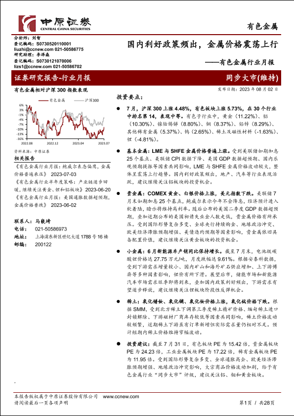 【中原证券】【20230802】有色金属行业月报:国内利好政策频出,金属价格震荡上行-28页