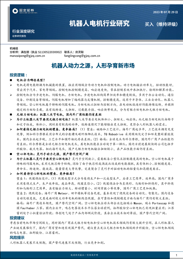 【国金证券】【20230729】机器人电机行业深度研究:机器人动力之源,人形孕育新市场-24页
