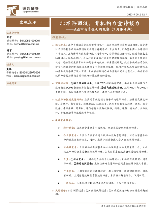 【德邦证券】【20230802】权益市场资金面周观察(7月第4期):北水再回流,非机构力量待接力-22页