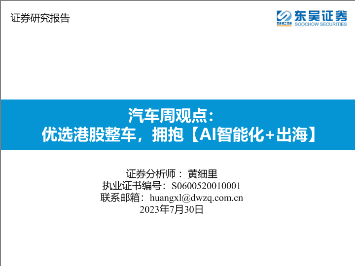 【东吴证券】【20230730】汽车周观点:优选港股整车,拥抱【AI智能化+出海】-31页
