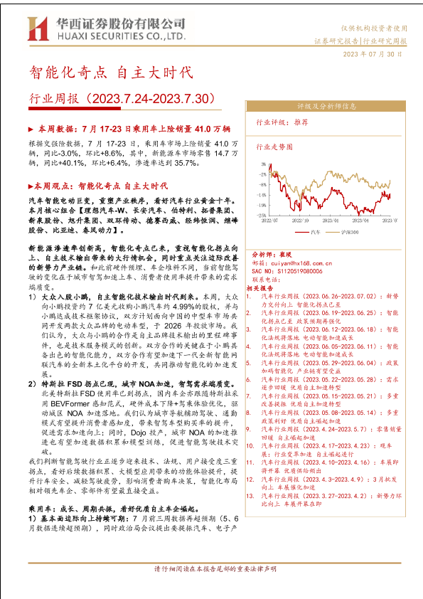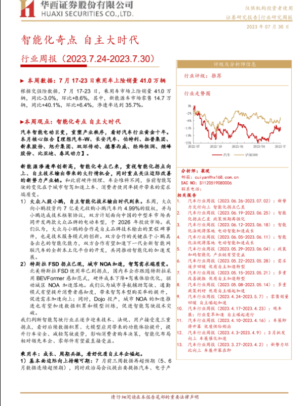 【华西证券】【20230730】汽车行业周报:智能化奇点自主大时代-31页