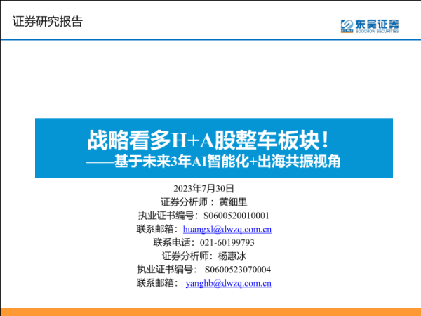 【东吴证券】【20230730】汽车行业基于未来3年AI智能化+出海共振视角:战略看多H+A股整车板块!-63页