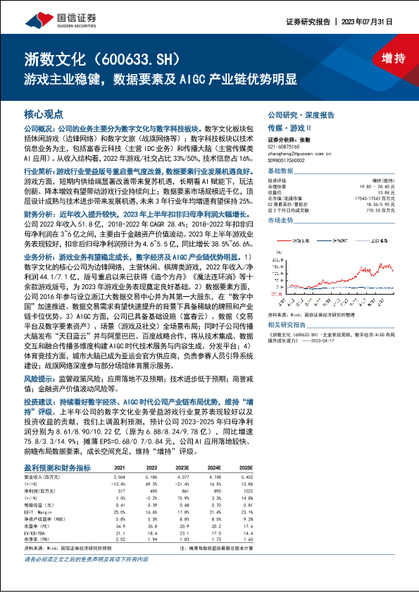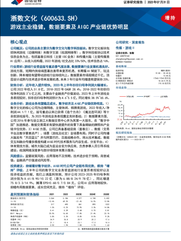 【国信证券】【20230731】浙数文化(600633)游戏主业稳健,数据要素及AIGC产业链优势明显-36页