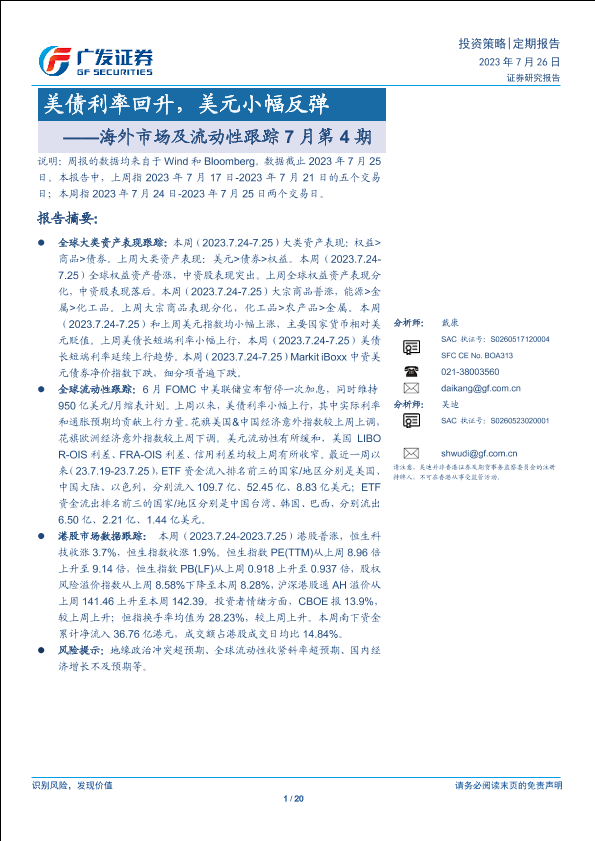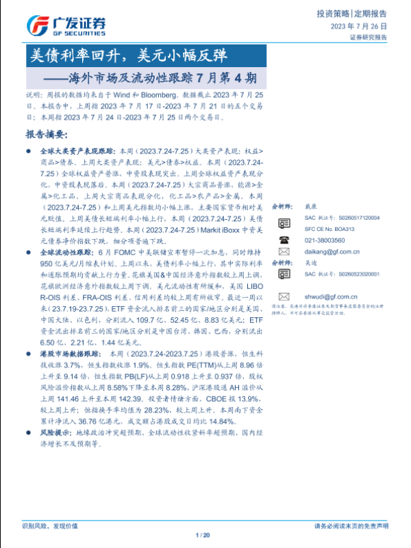 【广发证券】【20230726】海外市场及流动性跟踪7月第4期:美债利率回升,美元小幅反弹-20页
