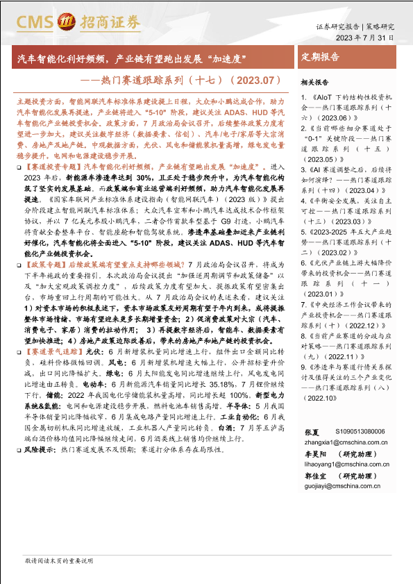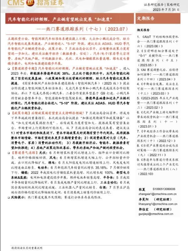 【海通证券】【20230731】热门赛道跟踪系列(十七):汽车智能化利好频频,产业链有望跑出发展“加速度”-44页