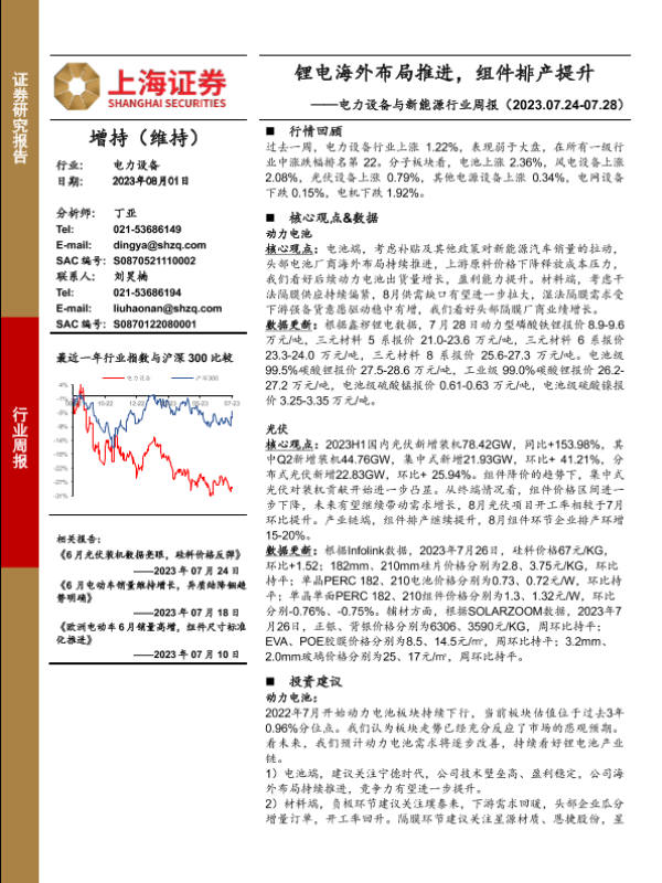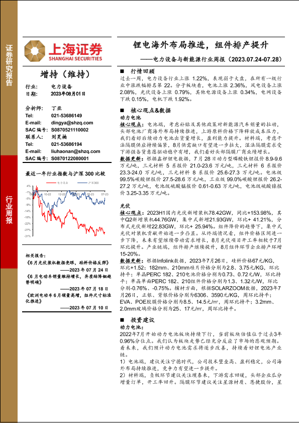 【上海证券】【20230801】电力设备与新能源行业周报:锂电海外布局推进,组件排产提升-26页