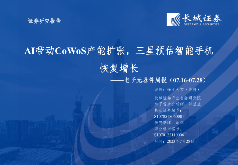 【长城证券】【20230728】电子元器件周报:AI带动CoWoS产能扩张,三星预估智能手机恢复增长-65页