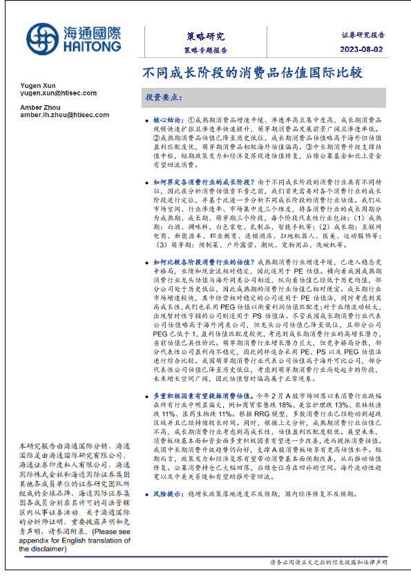 【海通国际】【20230802】策略专题报告:不同成长阶段的消费品估值国际比较-21页