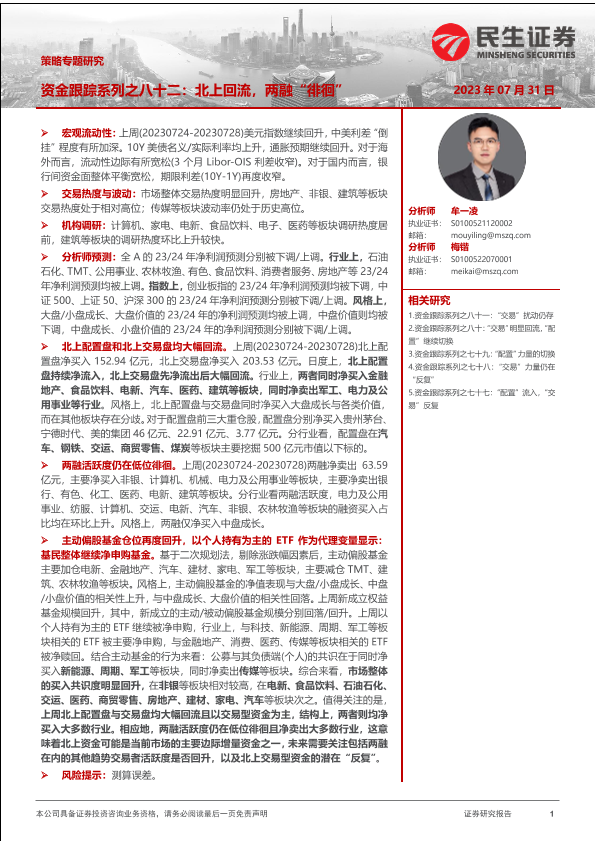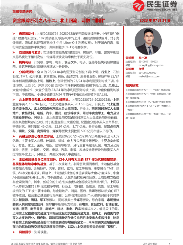 【民生证券】【20230731】策略专题研究:资金跟踪系列之八十二,北上回流,两融“徘徊”-36页