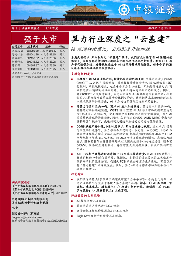 【中银证券】【20230730】算力行业深度之“云基建”:AI浪潮持续催化,云端配套升级加速-78页