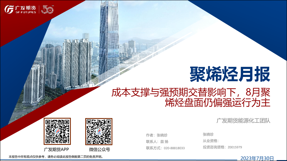 【广发期货】【20230730】聚烯烃月报:成本支撑与强预期交替影响下,8月聚烯烃盘面仍偏强运行为主-50页