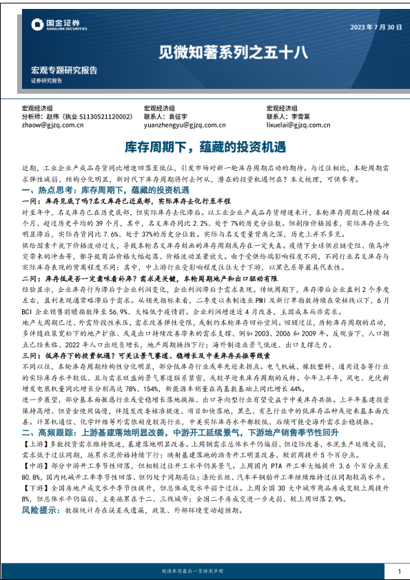 【国金证券】【20230730】见微知著系列之五十八:库存周期下,蕴藏的投资机遇-20页