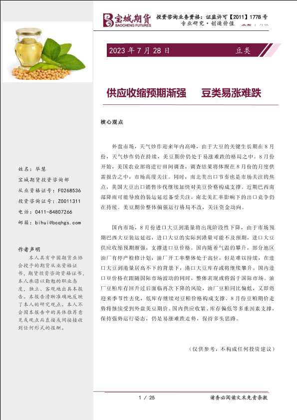 【宝城期货】【20230728】豆类月报:供应收缩预期渐强,豆类易涨难跌-25页