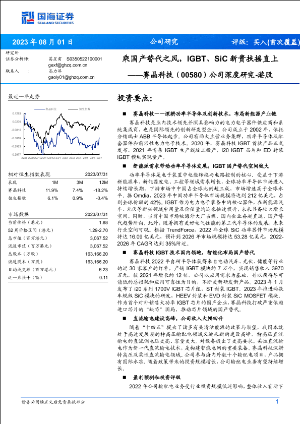 【国海证券】【20230801】赛晶科技(00580)公司深度研究-港股:乘国产替代之风,IGBT、SiC新贵扶摇直上-34页