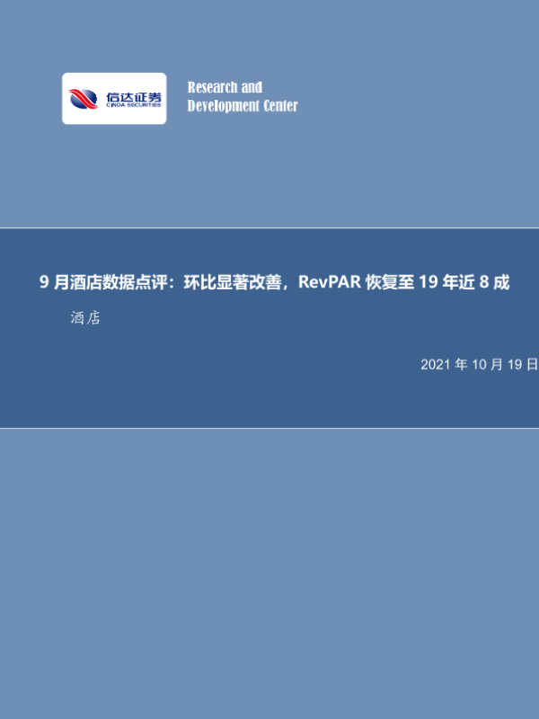 【信达证券】【20211019】9月酒店行业数据点评:环比显著改善,RevPAR恢复至19年近8成-15页