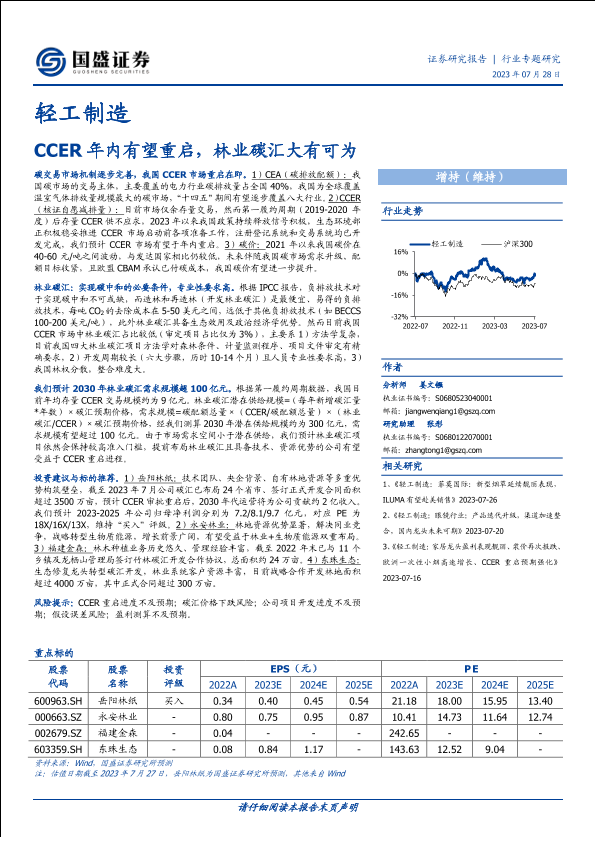 【国盛证券】【20230728】轻工制造行业专题研究:CCER年内有望重启,林业碳汇大有可为-33页