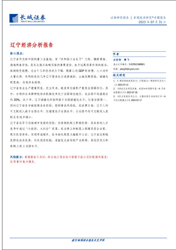 【长城证券】【20230731】辽宁经济分析报告-23页