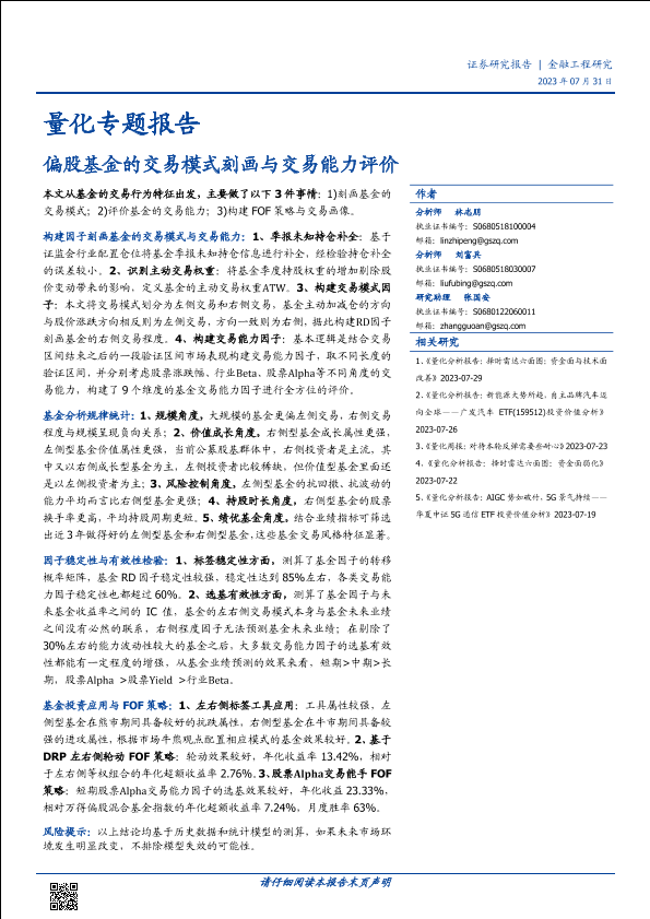 【国盛证券】【20230731】量化专题报告:偏股基金的交易模式刻画与交易能力评价-30页