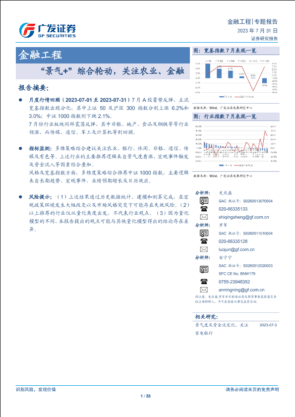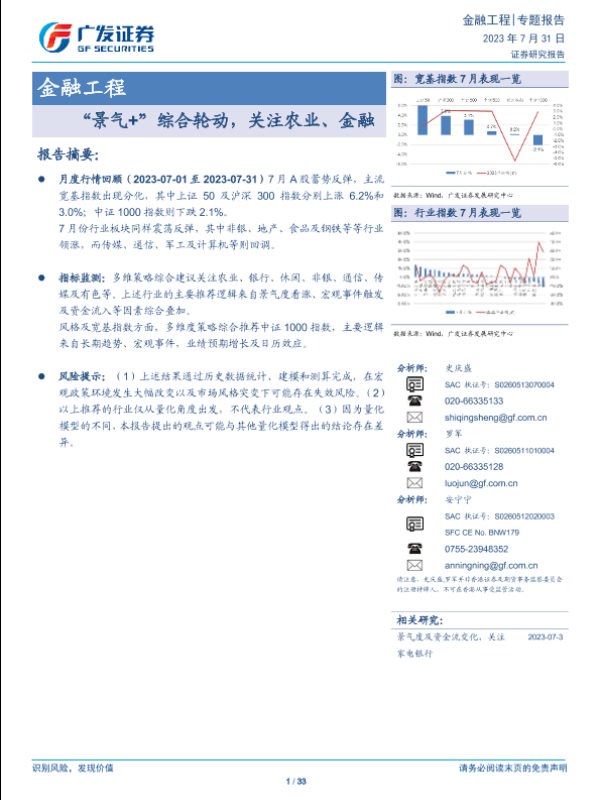 【广发证券】【20230731】金融工程:“景气+”综合轮动,关注农业、金融-33页