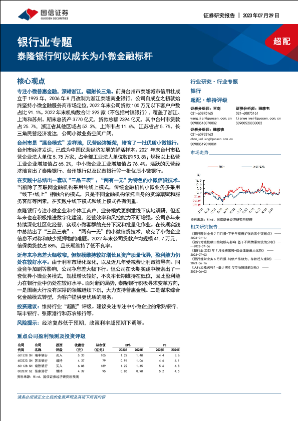 【国信证券】【20230729】银行业专题:泰隆银行何以成长为小微金融标杆-21页