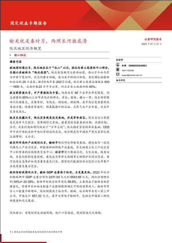 【西部证券】【20230731】陕北地区经济概览:榆关犹是秦时月,西照长河澈底清-20页