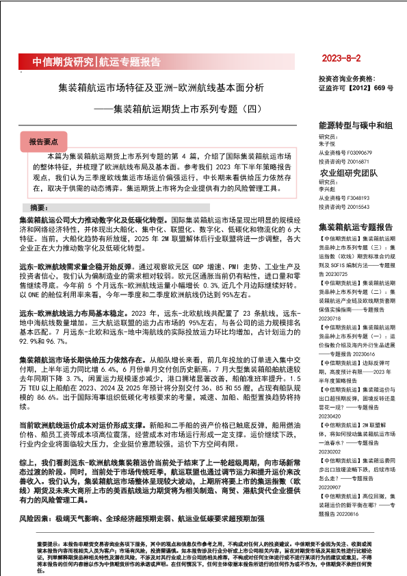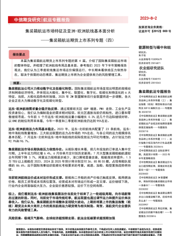 【中信期货】【20230802】集装箱航运期货上市系列专题(四):集装箱航运市场特征及亚洲,欧洲航线基本面分析-21页