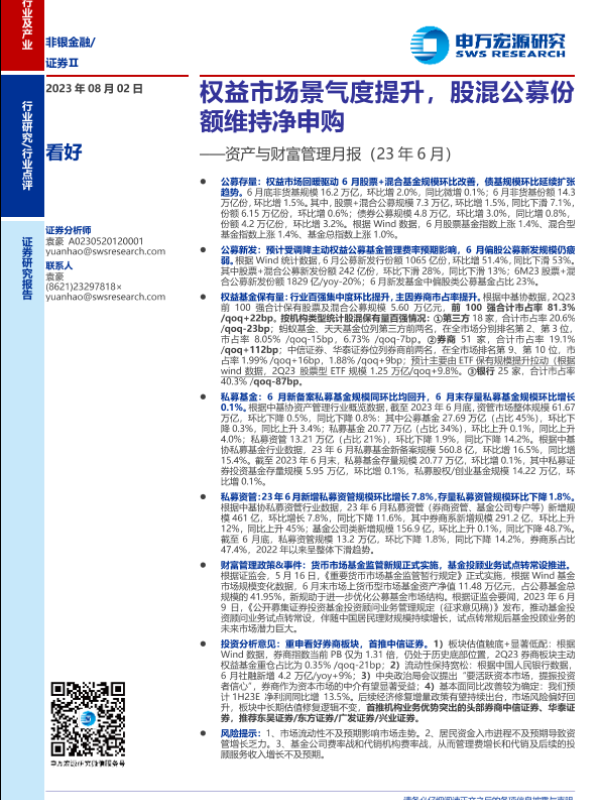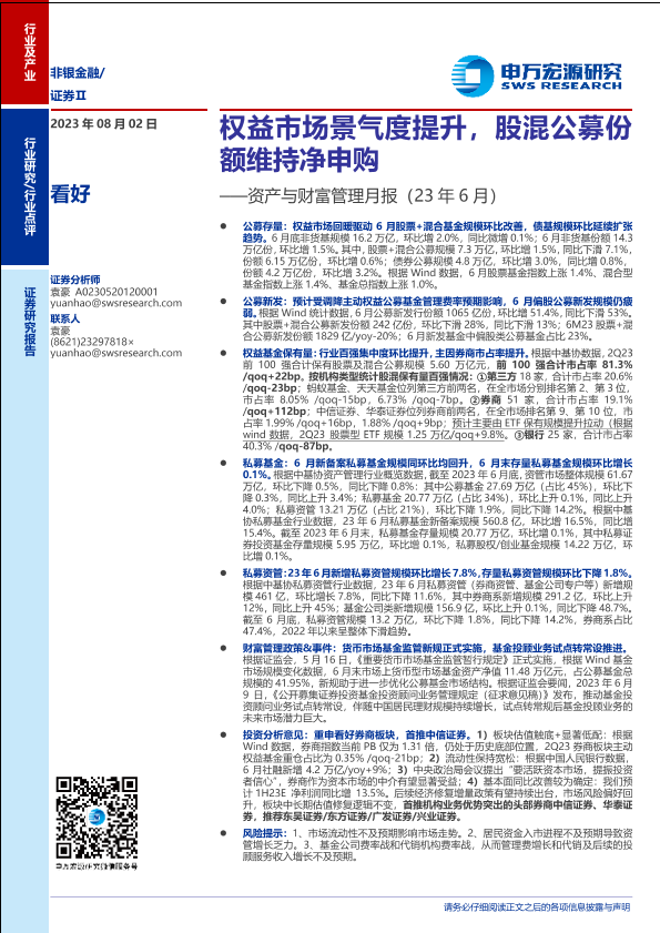 【申万宏源】【20230802】非银金融行业资产与财富管理月报(23年6月):权益市场景气度提升,股混公募份额维持净申购-21页