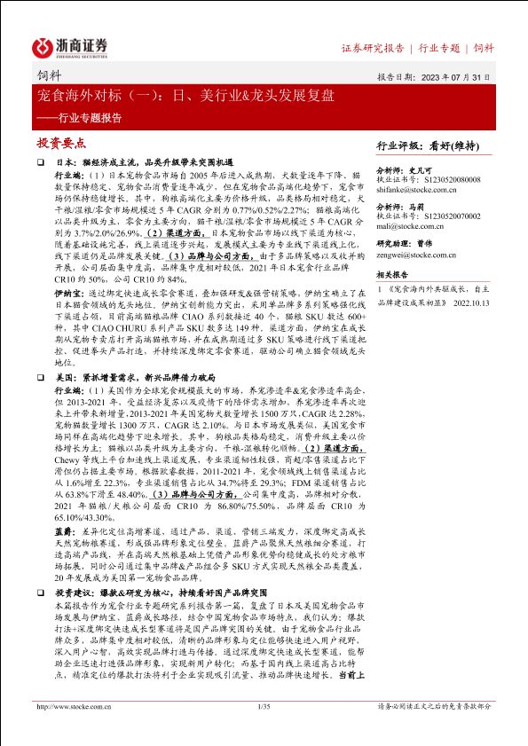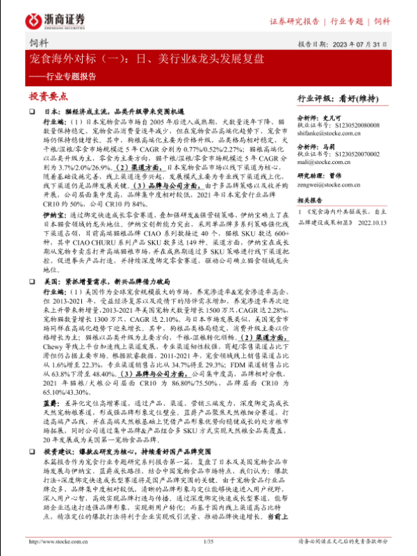 【浙商证券】【20230731】饲料行业专题报告:宠食海外对标(一):日、美行业&龙头发展复盘-35页