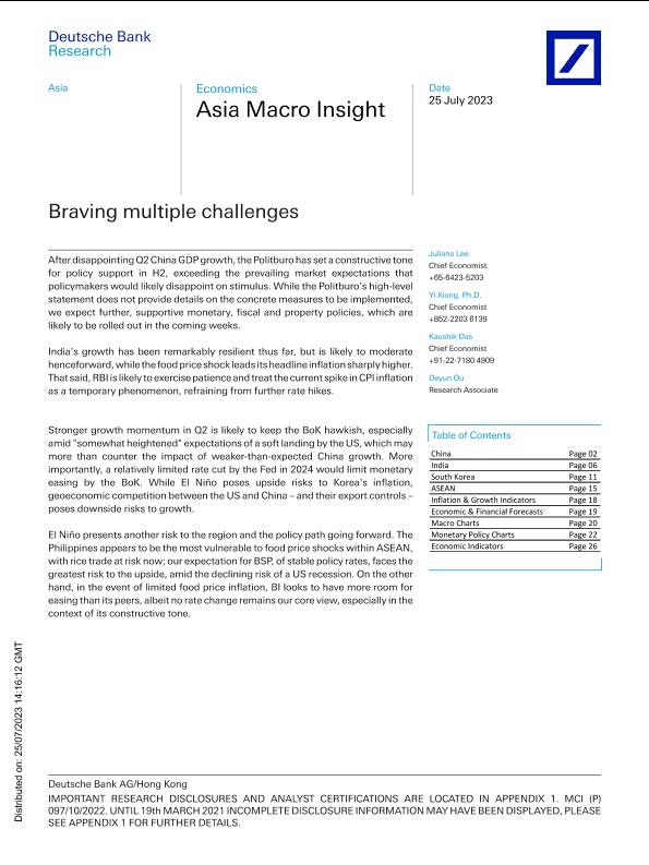 【Deutsche Bank】【20230725】Asia Macro Insight Braving multiple challenges-33页