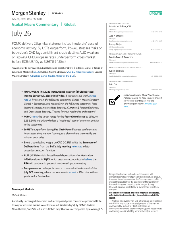 【Morgan Stanley】【20230726】Morgan Stanley Fixed-Global Macro Commentary July 26-26页