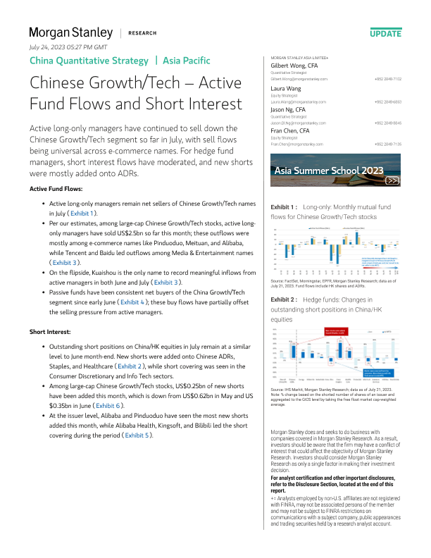 【Morgan Stanley】【20230721】Morgan Stanley-China Quantitative Strategy Chinese GrowthTech – Active Fund Flows and Short Interest-9页