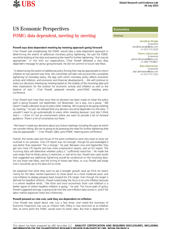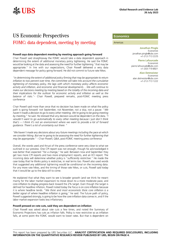 【UBS Securities LLC】【20230726】US Economic Perspectives FOMC data dependent, meeting by meeting-7页